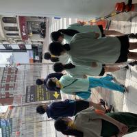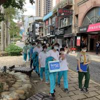 從學校走到新竹市中心的東門城約1.8公里,步行時間大約30分鐘,我們便決定由學校走到東門城並在東門城商圈募發票。我們先在校園內進行尊重生命的祈禱,接著出發走到市區來募集發票,伙伴們積極參與也樂在其中。