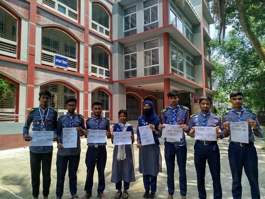 আমি প্রথমে এলাকার সমস্যা চিহ্নিত করি। তারপর একটি দল গঠন করে সচেতনতামূলক পোস্টার লাগাই, হাত ধোয়ার কর্মসূচি চালাই এবং ফিল্টার তৈরির প্রশিক্ষণ দিই। সব কাজ পরিকল্পনা অনুযায়ী দলবদ্ধভাবে করি