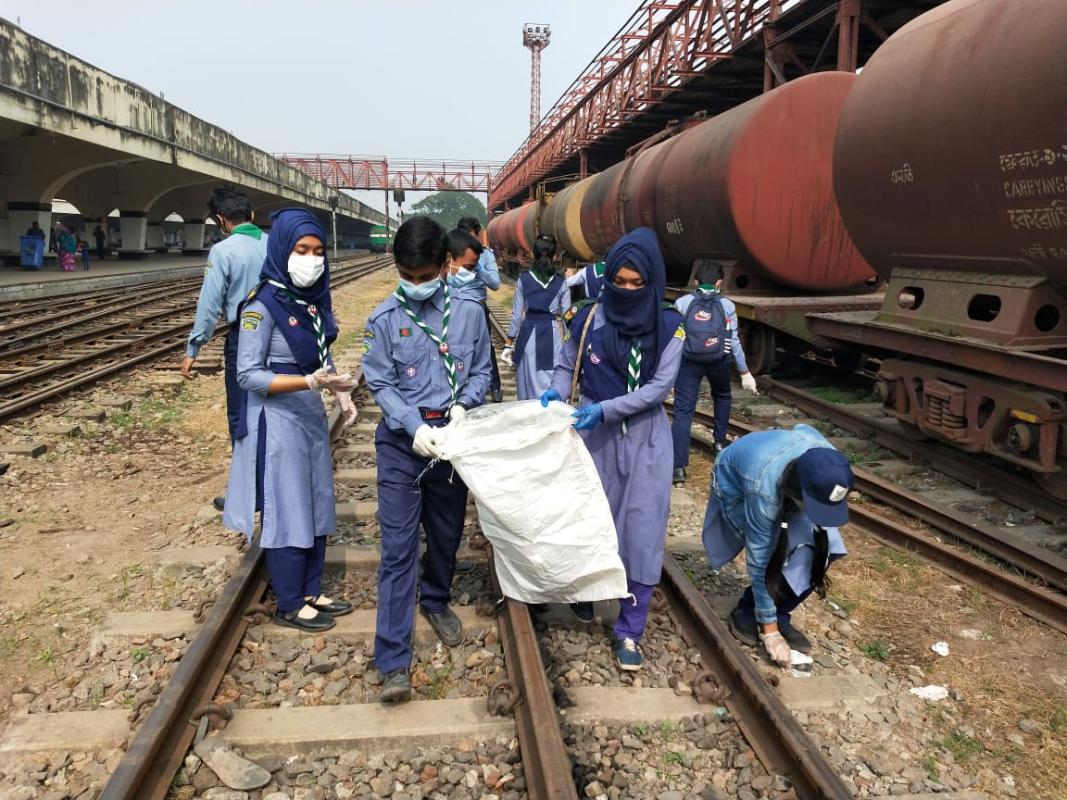 কমলাপুর রেলওয়ে স্টেশনে আমাদের স্কাউট দল একটি মিশনে যোগ দিয়েছিল। আমরা স্টেশন থেকে সকল প্রকারের ময়লা আবর্জনা পরিষ্কার করেছি। আমরা অপচনশীল ময়লাগুলোকে আলাদা রেখেছি এবং পচনশীল ময়লা আলাদা রেখেছি। আমরা একত্রে কাজ করে স্টেশনটিকে পরিষ্কার তুলেছি।