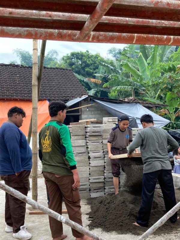 Saya disana membantu tukang dalam Mengayak Pasir, Memasang Kalsibot, dan Mengecat Dinding