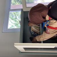 Bakti sosial Pramuka membersihkan Masjid dengan kegiatan gotong royong, Merapihkan lemari masjid, Membersihkan lantai, dan Membersihkan toilet masjid