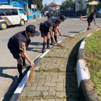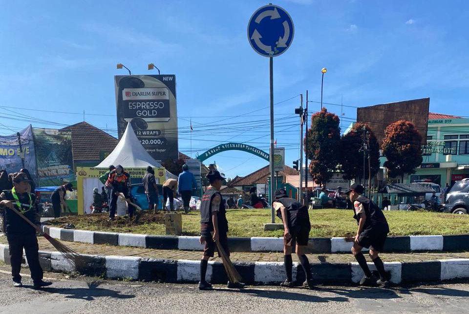 The cleaning activity of the Pangalengan sub-district city park was carried out by Pangalengan Scout members working together and collaborating with the Government, TNI and Polri.
