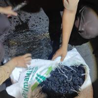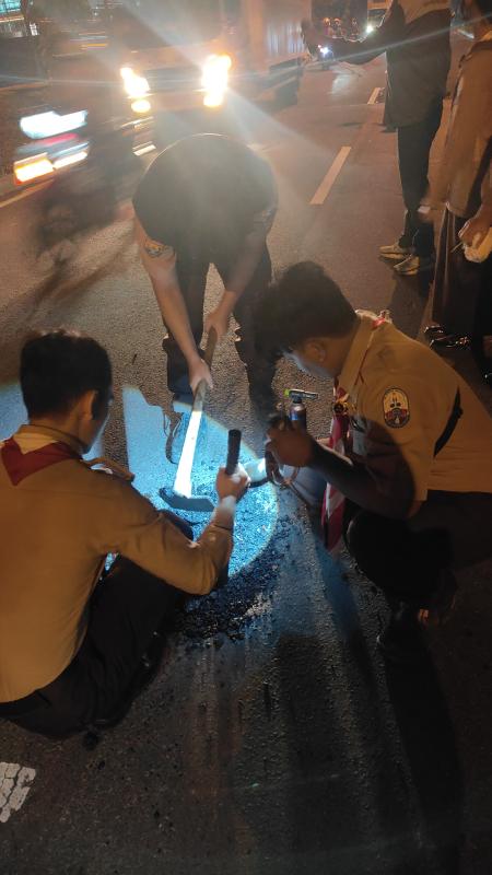 Kami membeli aspal cair di platform online shop, lalu mempersiapkan berbagai alat pendukung pekerjaan dan keamanan kerja, berbekal pengetahuan sipil dasar tentang pengaspalan dan dipandu oleh beberapa anggota kami dari teknik industri, kami melakukan pekerjaan itu dimalam hari ketika volume kendaraan rendah, dan mempersiapkan segalanya selama sekitar 3 hari