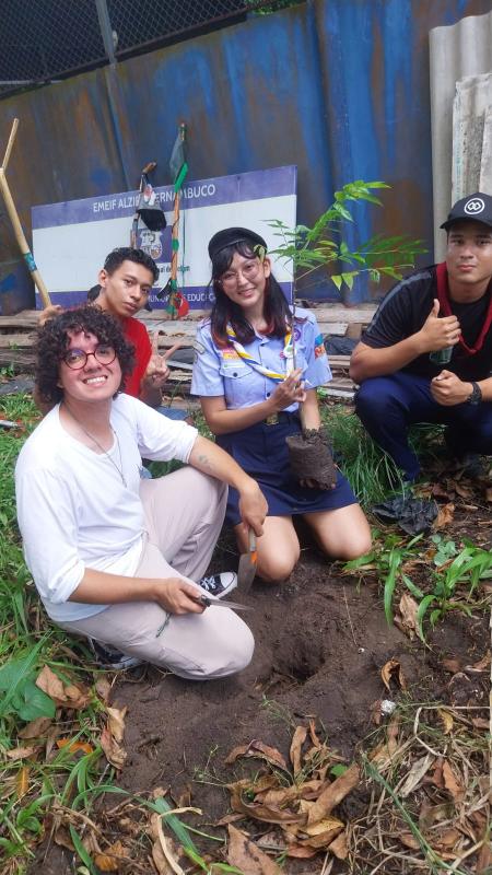 I am a forestry engineering student and my university produces lots of seedlings for research, including native endangered species. My scout group headquartes is located in a primary school with a huge unused area, grass was growing all around, so I decided to unite the scouts to plant the trees. I also did a lecture for them to learn about the trees we were planting (reedwood, cedar, acapu and andiroba) and the importance of forests, biodiversity and taking real action against climate change.