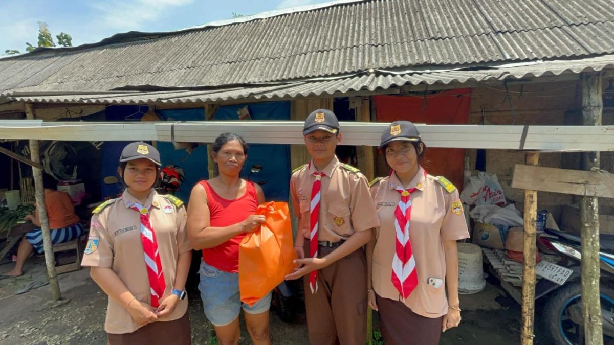Karya Bakti Pramuka Kwarcab Badung 2025 dengan Menyediakan bantuan kemanusiaan berupa sembako dibagi kepada 100 orang Masyarakat penerima manfaat