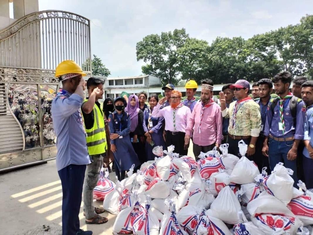Bangladesh in June, when the horrors of floods occur. Then some low areas of our district were flooded, and the people there became housebound. Then we will help 400 families with flood aid. On June 25, we provide relief to those 400 families.