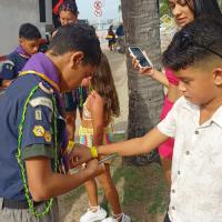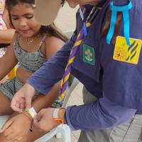 Necessidade das crianças em brincar um carnaval seguro. Parceria para doação de 230 pulseiras de identificação. Ação no Bloco carnavalesco na orla de Maceió - AL. 200 famílias impactadas, gerando a paz. Escoteiros, Sênior, pais e adultos voluntários sentiram-se orgulhosos em se envolver nesta ação onde celebramos a paz, divulgamos o Movimento Escoteiros sentimos seres úteis a sociedade, gerando a paz na comunidade e pertencentes a um mundo melhor