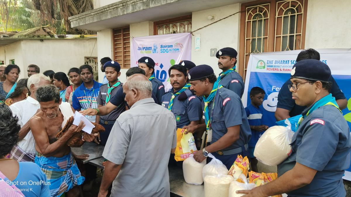 In response to the dreadful Fenjal Cyclone, we mobilized 43 members from Rovers and Rangers teams for flood-relief activities in the villages Koodapakkam, Kanavapettai, and Villiyanur, Puducherry. Under the "Flood Relief Distribution Drive: Together, We Can" initiative, we distributed as many as 500 ready-to-use essential supply packs to the families in trouble. These essentials will create hope in their minds of survival and can bring those people out of misery for a while.