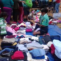 Estando apunto de acabar de dar los juguetes, comenzamos a dar la ropa, usando el mismos método, de uno por uno hasta que todos pasarán y luego se volvieran a formar. También la gente muy feliz por tener un poco mas de ropa, felices y sobre todo muy agradecidas.