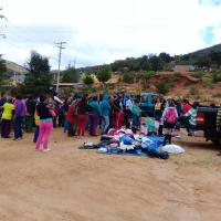 Descargamos nuestra carga, lo colocamos sobre lonas y esperamos a que se acercará más gente, también fuimos a avisar a algunas casas que se encontraban más alejadas de donde estábamos, para que fueran a tomar algunas cosas.