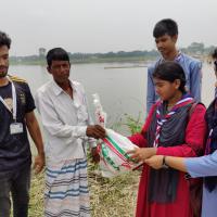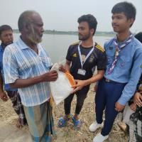 My project is held in Naldanga Upazila of Natore District. We distribute relief to the people affected by the floods by boat.