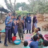 স্বাস্থ্য সুরক্ষা বিষয়ক আলোচনা করি।এবং হাত ধোঁয়ার সকল প্রসেস শিখিয়ে দেই তাদের। প্রথমে পরিষ্কার পানিতে হাত ভিজিয়ে নিতে হবে। তারপর হাতের পিঠ, তালু ও আঙুলে পরিমাণমতো সাবান ঘষে নিতে হবে। তারপর অন্তত ২০ সেকেন্ড ধরে হাত ঘষে নিতে হবে। হাতে কোনো আংটি বা অন্যান্য গয়না থাকলে তার ওপর-নিচ ভালো করে ঘষে নিতে হবে। দুই হাত একে অপরের সঙ্গে ভালো করে ঘষতে হবে এবং এরপর পরিষ্কার পানিতে হাত ধুয়ে নিতে হবে। হাত ধোয়া শেষ হলে তা শুকনা কাপড় বা টিস্যু দিয়ে ভালো করে মুছে নিতে হবে।