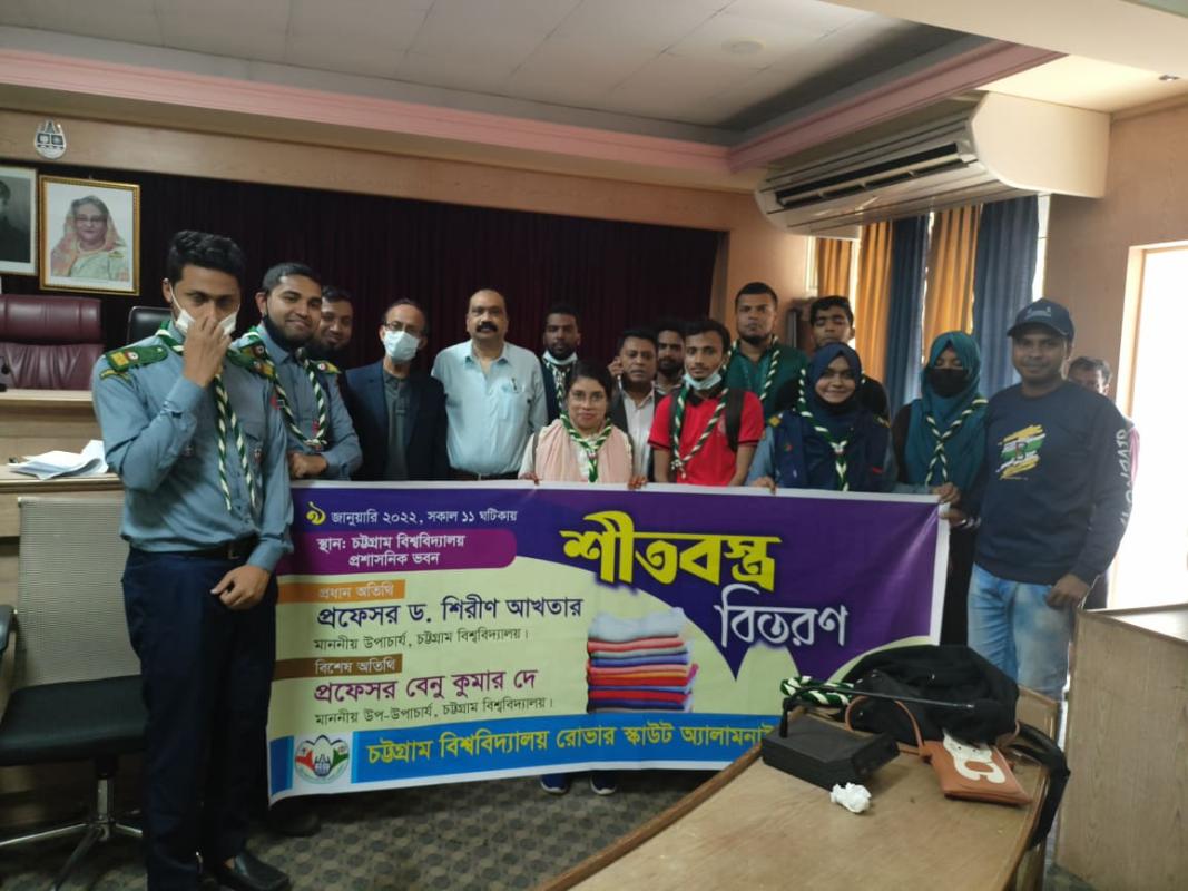 চট্টগ্রাম বিশ্ববিদ্যালয় জোবরা এলাকায় অবস্থিত। উক্ত এলাকায় বিভিন্ন শীতার্ত দরিদ্র অসহায় মানুষের কষ্ট লাঘবের উদ্দেশ্য আমরা প্রায় ৬০ জন মানুষের মাঝে শীতবস্ত্র বিতরণ করি। এখানে সহায়তা করেছেন আমাদের গ্রুপ কমিটির সভাপতি, সম্পাদক ও রোভার স্কাউট লিডারগণ।