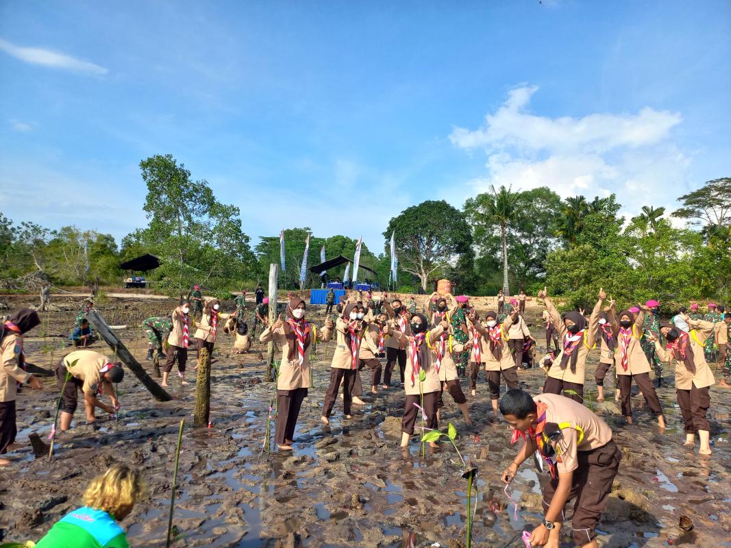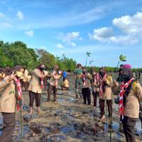 In commemoration of the Scout Anniversary at my school, our Scout organization collaborated with the Marine Corps to carry out a mangrove planting activity. This event coincided with the Marine Corps Anniversary, allowing both celebrations to take place hand in hand, with each organization marking its special day. Funded by the Marine Corps, the project also involved experts from the Ministry of Environment and Forestry. Coached by experts before planting mangroves.