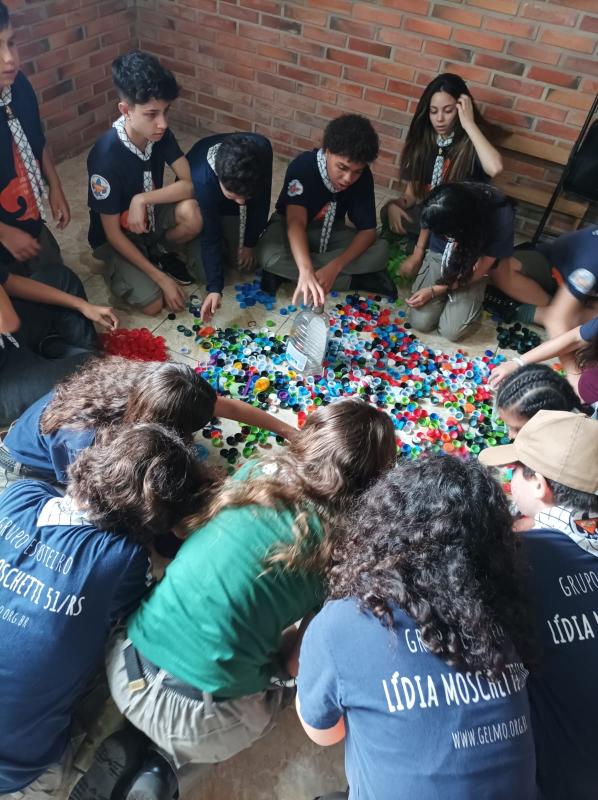 Em um formato de mutirão arrecadamos, por quase três meses tampinhas plásticas junto da nossa comunidade.