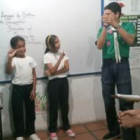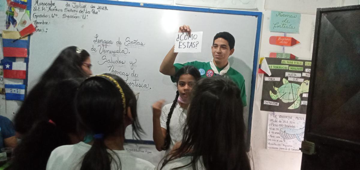 Se enseño y se dio a conocer la lengua de señas venezolana a los niños delos grados 6to y 5to grado de la Institución Nuestra Señora de la paz, hablando un poco sobre la comunidad sorda y como esta se comunica de la misma forma se impartieron talleres sobre diferente temas de la lengua de señas venezolana o LSV, como lo fueron el abecedario, normas de cortesía, colores, etc.