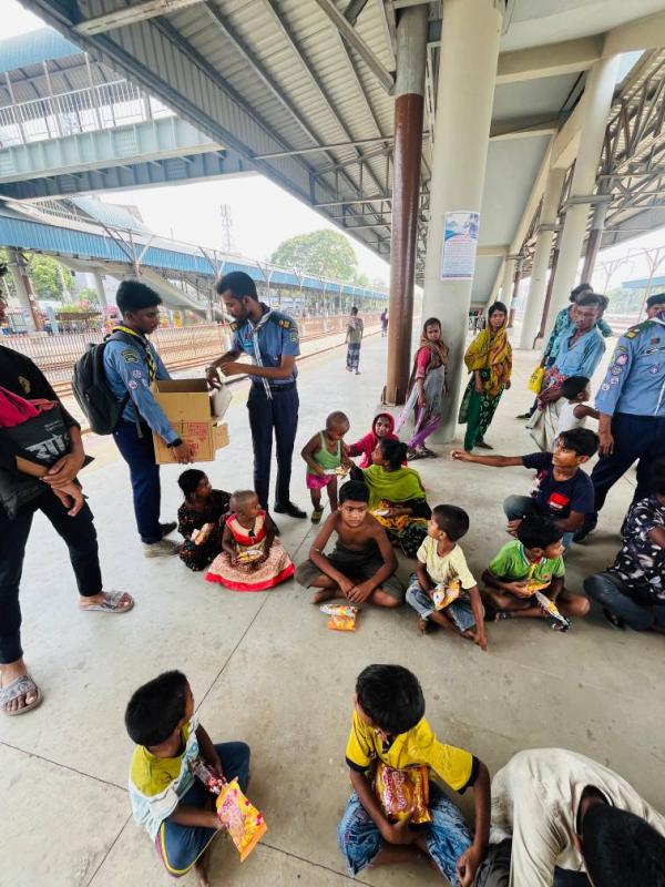 ঈদ এর খুশি সবার জন্য। এই ঈদে সবাই মিলে আন্দোলন উল্লাস করুক। আমরা অগ্নিবীণা রেলওয়ে মুক্ত স্কাউট গ্রুপ এর পক্ষ থেকে গত ১০/০৬/২০২৫ হতে ১২/০৬/২০২৫ পর্যন্ত মোট তিন দিন দৈনিক ছয় ঘণ্টা করে রেলওয়ে যাত্রী সেবা প্রদান করেছি। অদ্য ১১/০৬/২০২৫ তারিখ ঈদ উল আযহা উপলক্ষে স্টেশনে থাকা দরিদ্র মানুষ ও ছোট ছোট শিশুদের মাঝে খাবার বিতরণ করেছি। এই প্রকল্পের মাধ্যমে টেকসই উন্নয়ন অভীষ্ট এর লক্ষ্য ২ যথা: "খুদা মুক্তি" পালিত হয়েছে। এই প্রকল্পে ৮০ জন পথ শিশুদের মাঝে খাবার বিতরণ করা হয়েছে।