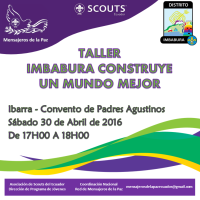 El Sábado 30 de abril de 2015 desde las 17:00 hasta las 18:00 en el Convento de Padres Agustinos ubicado en la Av.Atahualpa y Hernan Gonzales de Saa, diagonal a la iglesia de Guadalupe se realizó el Taller Imbabura Construye un Mundo Mejor, con la participación de 34 personas entre unidad scout, caminantes, rovers y dirigentes del Distrito Scout Imbabura.