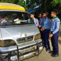 ট্রাফিক সচেতনতা বৃদ্ধিতে লিফলেট বিতরন