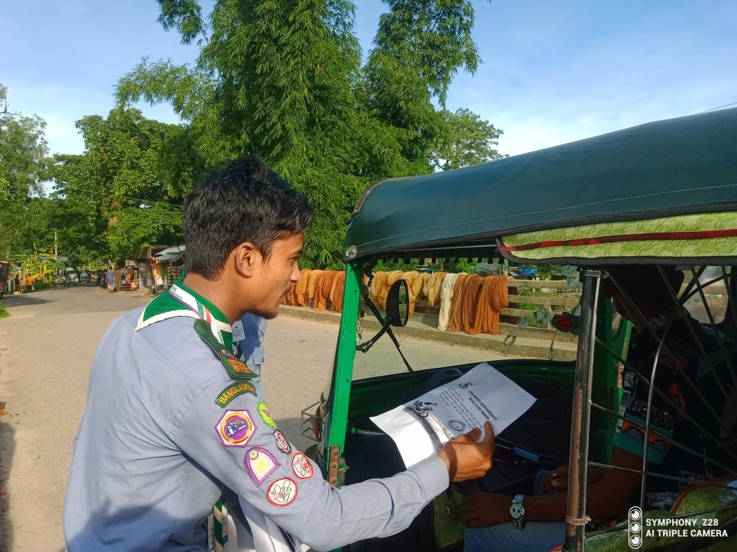 তাই আমরা অগ্রদূত মুক্ত স্কাউট দলের ২০ জন স্কাউট ও রোভার স্কাউট নিয়ে লক্ষনাবন্দ ইউনিয়নের চৌধুরীবাজারের ব্যস্ত রাস্তায় এই কার্যক্রমটি বাস্তবায়ন করি। আমরা বিভিন্ন গাড়ির চালকদের ট্রাফিক আইন সম্পর্কে ধারনা দেই ও সচেতনতার জন্য লিফলেট বিতরণ করি। তাছাড়া পথচারীদের ফুটপাত ব্যবহার করার জন্যও সচেতন করি।
