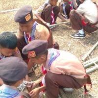learn about a simple knots and then practice it, first i give them a rope and then a stick, i show how to made a simple knot by a rope, and then i show how to make it using a stick for make a simple a flag pole and then they practice it