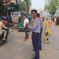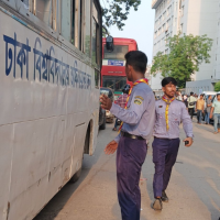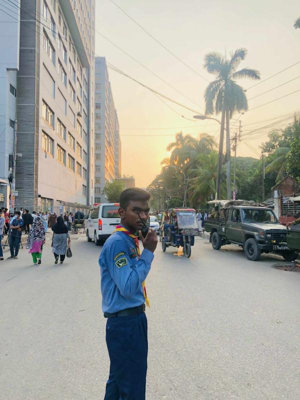 To manage the situation at that time, we worked with a team of 7 Scouts and 10 Rover Scouts at Kamaruzzaman Saharani, Dhaka. This activity took place from 10 August 2024 to 19 August 2024. Our primary role was to ensure the smooth movement of vehicles on the roads. We made drivers aware of traffic laws and encouraged pedestrians to use the sidewalks properly.