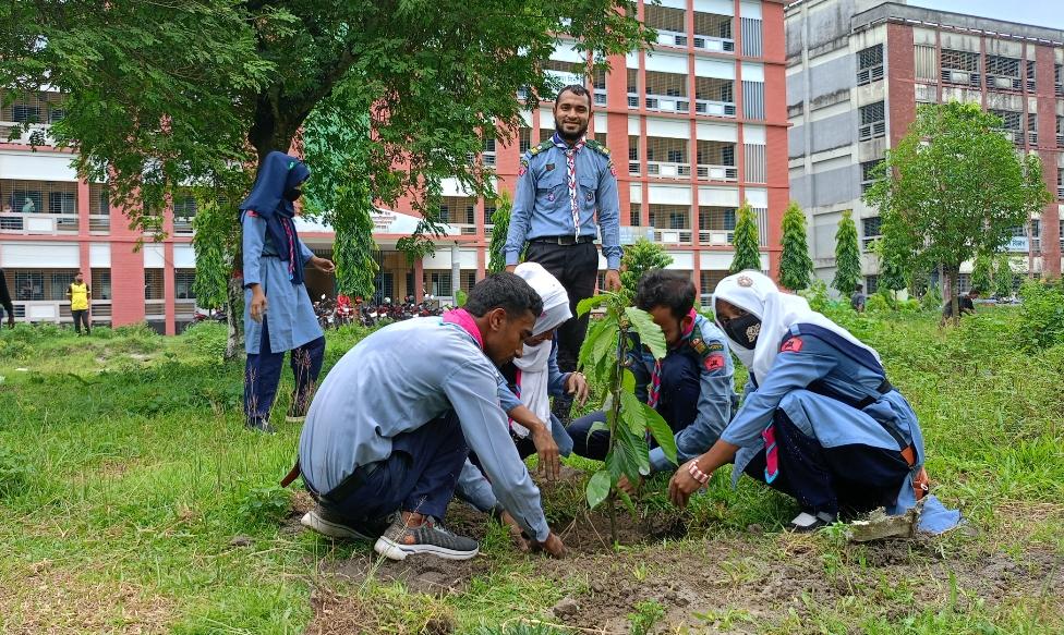 We planned the plantation with our Rover Scout team at Nilphamari Govt. College. We selected suitable locations, collected saplings, and organized tools. Over two days, we planted 300 trees with teamwork and guidance from our leaders. Students and teachers also joined, making it a collaborative effort.