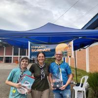 Divulgação entre os integrantes do GEGK e na comunidade, incentivando a doação de materiais escolares. Parceria para pontos de coleta: Livrarias e Lojas da Comunidade, divulgação nas redes sociais, jornal e rádio da cidade.