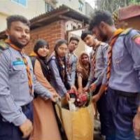 Members of Bogura Polytechnic Institute rover Scout Group initiated the create a "Humanity wall" programme on 10/11/2023 to 11/11/22023 at Colony , Bogura sadar, Bogura,12:30 pm in which 35 scouts participated actively. We collected some cloths and some things to implement this programme.