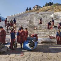 From around 8 in the morning, me and the volunteers made it to the Dzong area in which the Tsechu was held. Till around 2 in the afternoon, we worked on managing pathways for the people, along with garbage disposal. Then from 3 pm to around 6 pm, we worked solely on waste disposal