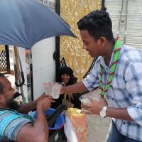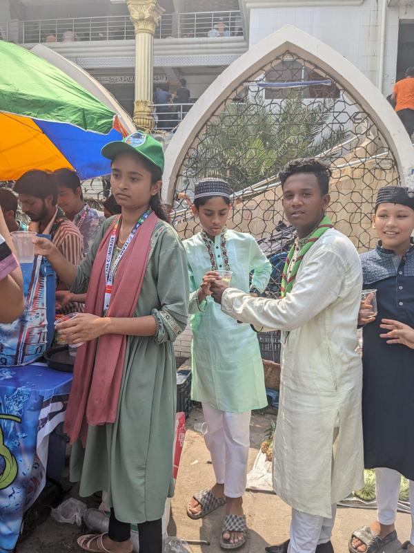 First I formed a group of scouts from my unit. Then we all collected money from ourselves and bought glasses and many other thing to serve people water . We did the work with permission from the mayor and we did the work for about 8 days.