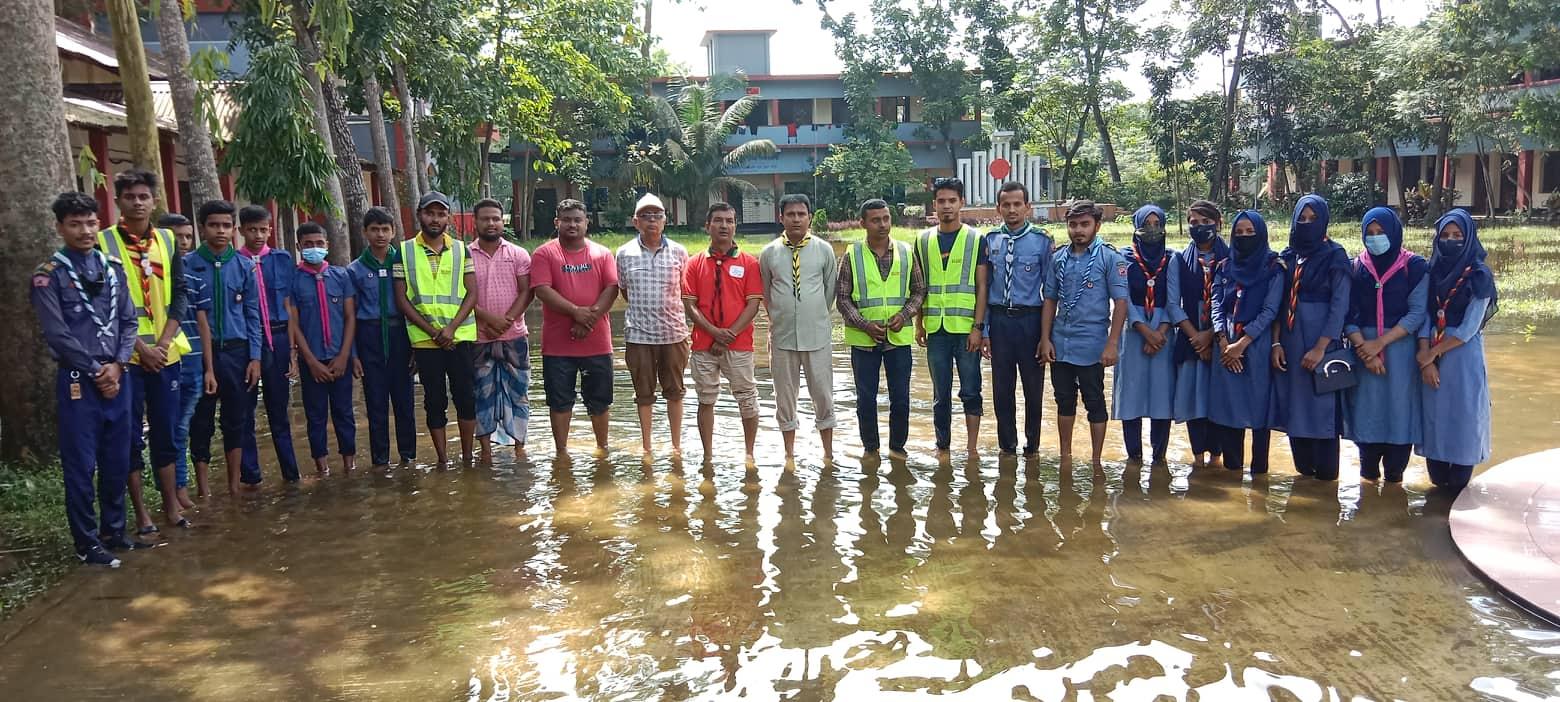 We started this work with the encouragement and inspiration of District Rover Scout Editor Md.Mobosshir Ali sir and the consent of College Principal Sir to help the helpless and hungry people in flood situation.