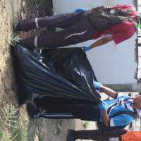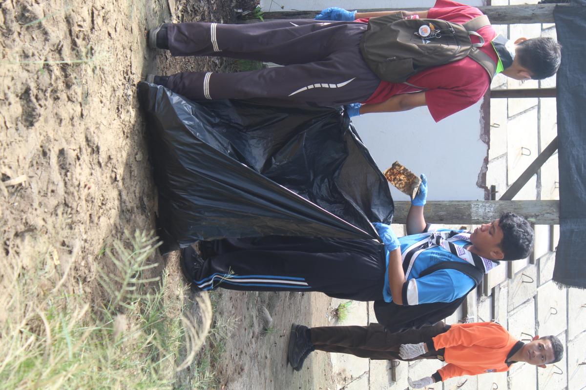 Sarung tangan latex dan trash bag Kemudian kami keliling di sekitar pantai dan mengambil sampah-sampah yang ada di sana Kemudian kami memasukkan sampah tersebut ke dalam trash bag kemudian semua trash bag dikumpulkan jadi satu tempat