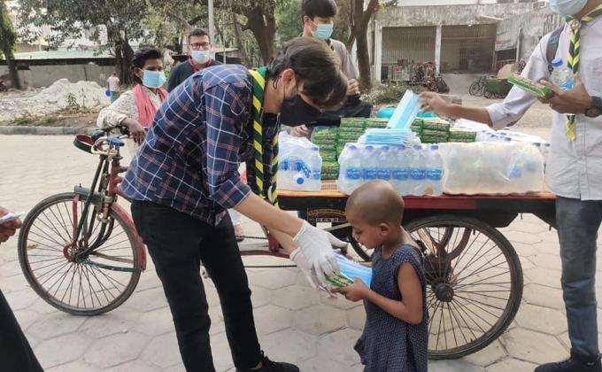 অসহায় ছিন্নমূল মানুষকে খাবার বিতরণ