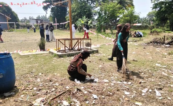 membersihkan lingkungan sekolah dan masyarakat