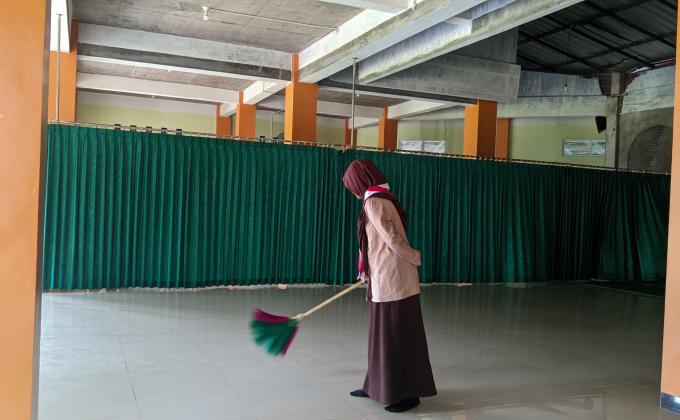 Kegiatan membersihkan masjid sekolah