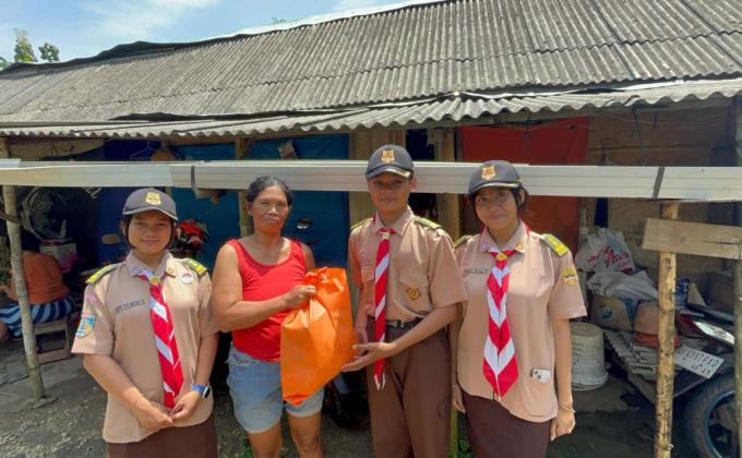 Pramuka Badung Bagi Sembako ke Warga Terdampak