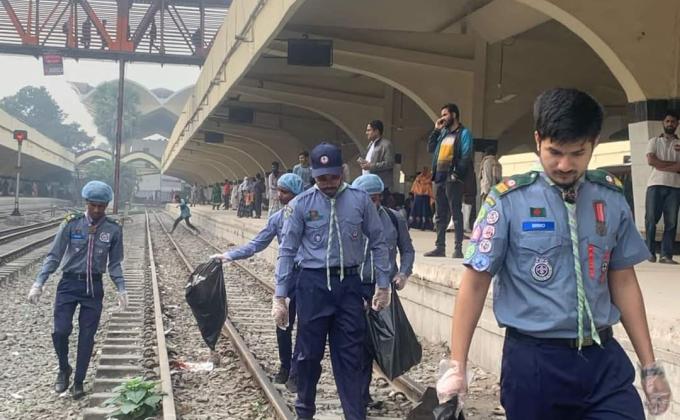 ময়লা-আবর্জনা পরিষ্কার অভিযানে নিয়োজিত স্কাউটস