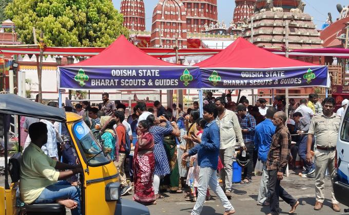 রেলওয়ে স্টেশনে যাত্রী সেবায় স্কাউট।