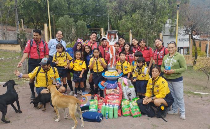 Scouts compartiendo alegría en Navidad.