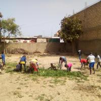 Cette activité est réalisée le samedi 27 Mai 2017 au centre Jean diatta de hamo 6(guédiawaye). En premier temps,ils se sont divisés en 2 sizaines et ils ont commencé à désherber le jardin. Après le désherbage,ils ont disposé les herbes morts enbtas.