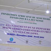 Ce projet appuyé par la Fondation Africaine du scoutisme consiste à l’aménagement d’une pépinière de 10.000 arbres forestiers et fruitiers en ville de Goma.