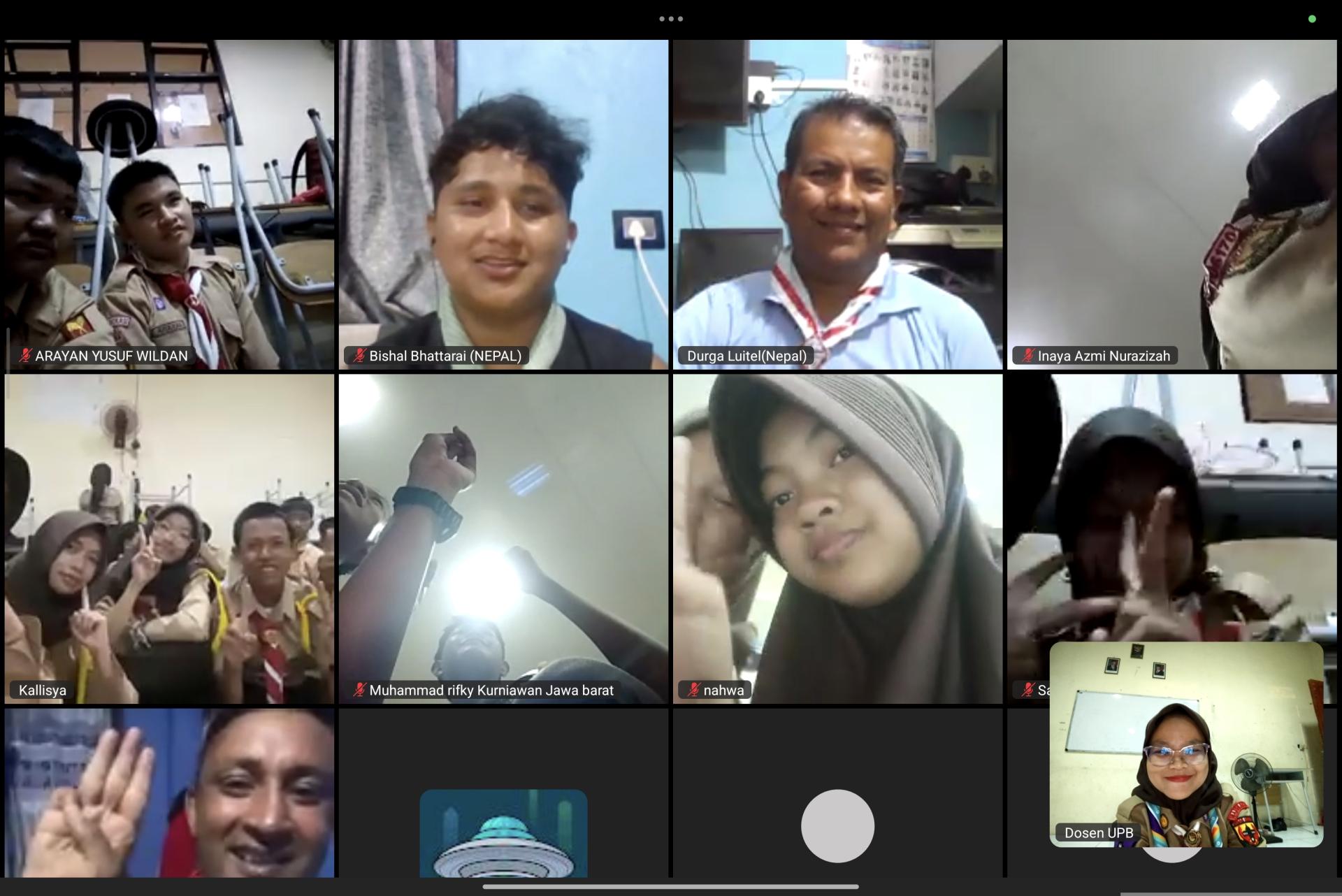 Kegiatan ini kami isi juga dengan Zoom Meeting dengan kawan-kawan kepanduan dari Malaysia, Thailand, Nepal, India, dan masih banyak lagi.