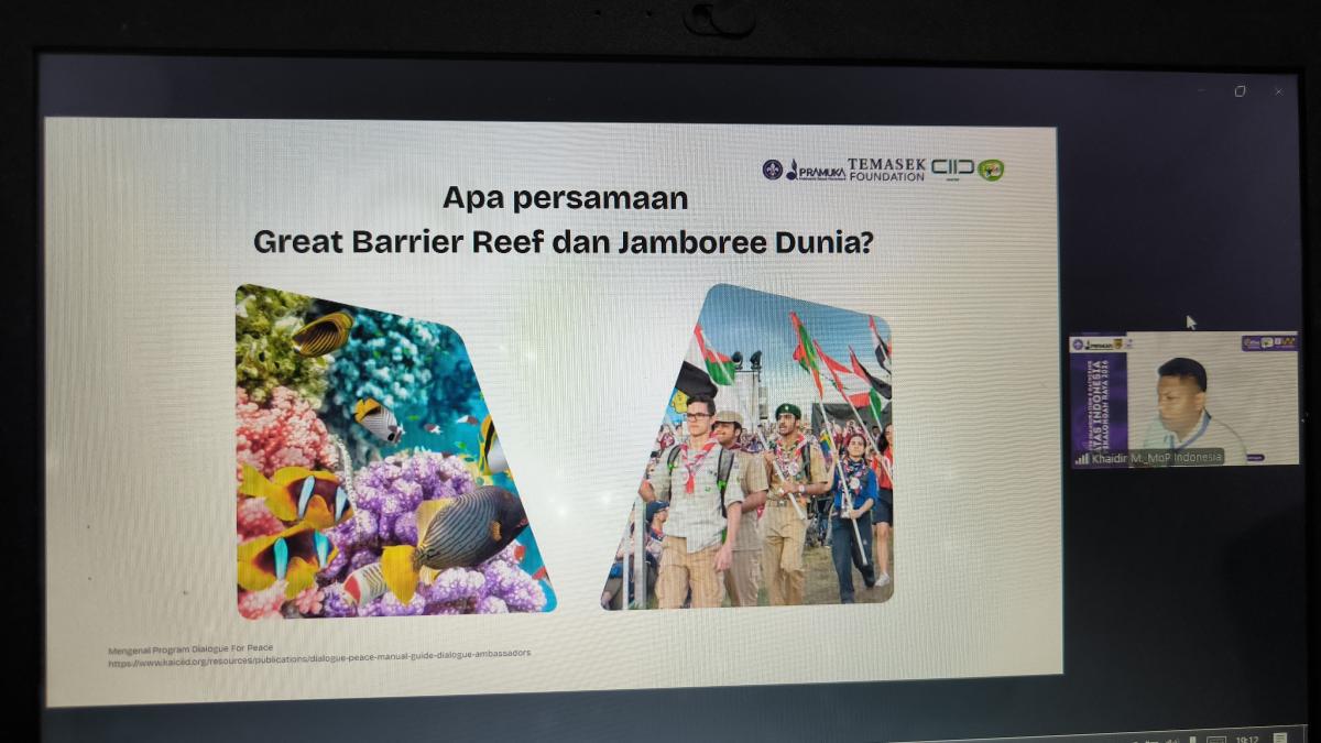 Pada kesempatan kali ini, berkegiatan pertama kali melalui online dengan Materi Dialoge For Peace dan Peace and Community Engagement Initiative. Dengan kedua Materi ini memberikan banyak manfaat dan memiliki dampak positif. Dalam melaksanakan kegiatan tersebut yaitu dengan memahami dengan pemateri yang di sampaikan ada beberapa hal tentang ringkasan materi tersebut tentang persamaan antara "Great Barrier Reef" dan "Jambore Dunia". Great Barrier Reef dan Jambore Dunia memiliki persamaan sebagai warisan berharga berskala internasional yang melibatkan banyak negara dan budaya. Keduanya menjadi simbol kebanggaan global yang dijaga dan dihormati oleh komunitas dunia. Selain itu, keduanya berperan sebagai sarana edukasi, baik tentang pelestarian lingkungan pada Great Barrier Reef maupun tentang persaudaraan dan kerja sama global pada Jambore Dunia. Keduanya juga menumbuhkan kesadaran akan pentingnya tanggung jawab bersama untuk menjaga keberlanjutan dan perdamaian dunia, Keduanya juga menjadi contoh nyata dari kekayaan keberagaman (biodiversitas dan budaya).