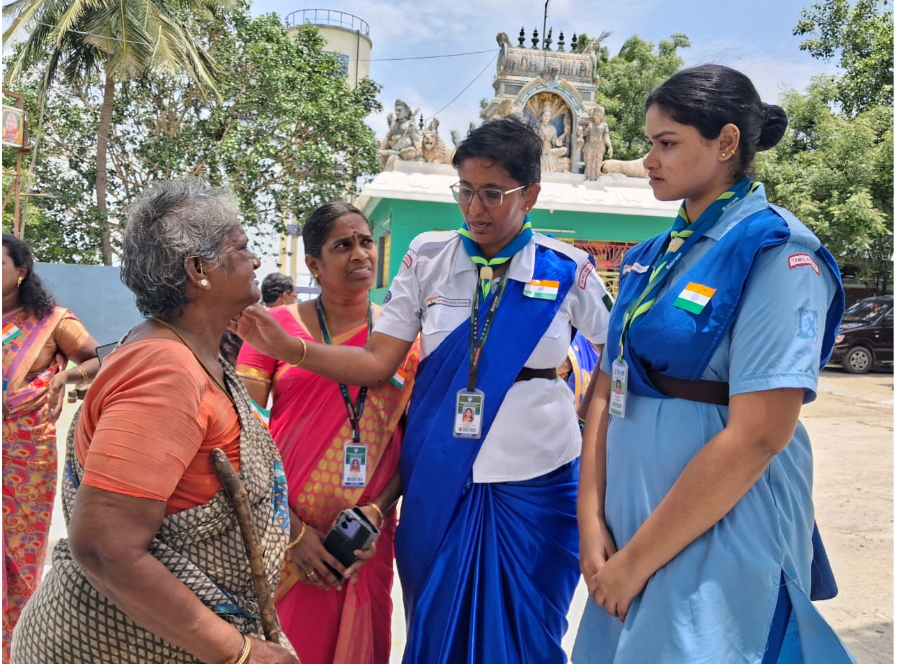 (15/8/2025) The day was a remarkable blend of patriotism and community service that will remain etched in my memory. The morning unfolded with the grand Longest National Flag Presentation, where I, together with Ranger Ms. Varshnee, had the honour of representing our SSIT-UNIT. Standing beneath the vast expanse of the tricolour, we felt a profound sense of national pride, unity, and shared identity. In the afternoon, our journey took us to the Gram Sabha meeting at Amarambedu village, where we witnessed firsthand the workings of grassroots governance and rural development. Listening to the panchayat leaders and villagers share their needs, aspirations, and challenges was an eye-opening experience, underscoring the importance of active community engagement in driving sustainable progress. As a Ranger Leader, it was deeply fulfilling to participate, alongside Ranger Ms. Varshnee, in both a patriotic celebration and a constructive development dialogue on the same day. The warm welcome and openness extended by the panchayat leaders and villagers of Amarambedu enriched our understanding of rural realities and strengthened our resolve to contribute meaningfully towards inclusive growth. This day reaffirmed my belief that service, when rooted in empathy, awareness, and shared purpose, has the power to bring about lasting transformation for communities and individuals alike.