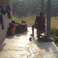 To compensate for the combustion of our cooking fires and our campfire, we planted a total of 28 trees throughout the vicinity of Ngombe village.