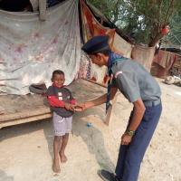 We 20 members decide together to do something for the people and all agree and give money. With that money we buy something to eat for the people. They are very happy to receive it.
