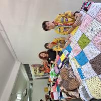 Invite a las personas a donar cuadritos tejidos de 20x20 para hacer una cobija con 54 cuadritos, estas cobijas fueron entregadas a personas en pueblos marginados y a mujeres en la carcel que fueron separadas de sus hijos, también pedí comida para entregar fuera de hospitales a personas que esperan noticias de sus familiares enfermos y a los migrantes