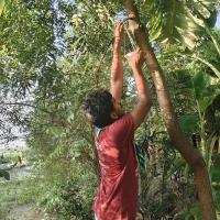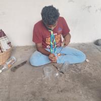 Due to the heat and lack of food and water in our village, birds had stopped coming. So I thought of keeping water for birds on a tree near us during the summer.