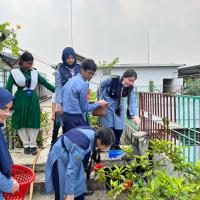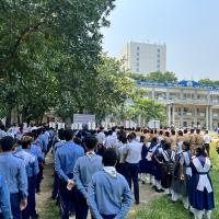 On WhatsApp, our Scout group, Rover Group, Red Cresent Youth Group, and our National Cadet Core were told to be prepared for this project and to be at school early in the morning. After reaching school we made a line and were given gloves, broomsticks, and small bins to clean all the nearby areas where dengue mosquitos may lay their eggs. We cleaned the nearby areas, destroying any location where dengue mosquitos may lay their eggs.